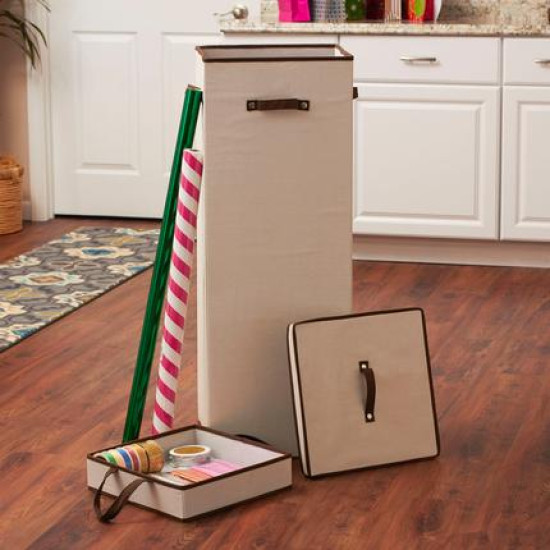 Tall Wrapping Paper Organizer Storage Box with Lift-Out Ribbon Tray